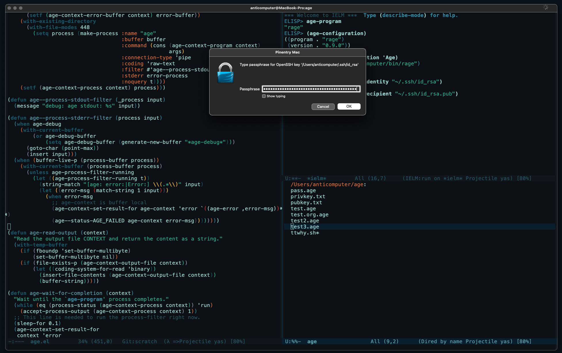 - https://github.com/anticomputer/age.el